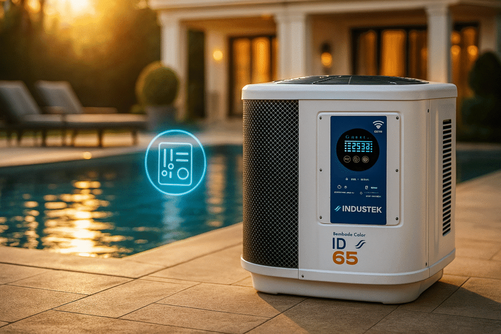 Tecnologia e economia para aquecer sua piscina com eficiência. A bomba de calor ID Industek oferece alto desempenho com baixo consumo, ideal para quem busca uma solução confiável, robusta e acessível. Com sistema On/Off inteligente, aquece a água aproveitando o calor do ar externo e mantém a temperatura estável automaticamente, desligando e religando conforme necessário.